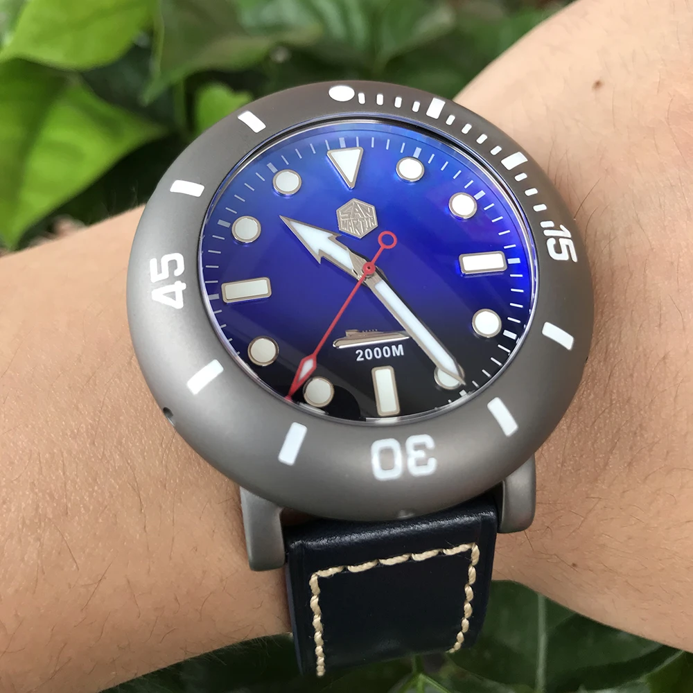 San Martin Men Automatic Watch Titanium Case Diver Watch 2000m Water Resistant Luminous Bezel limit